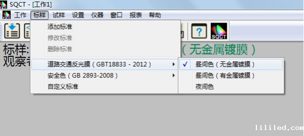 针对国内交通路标使用较多的标准GB/T 18833,SQCT软件将该标准中的标准色域纳入其中,客户只需根据自己需要进行选择即可。