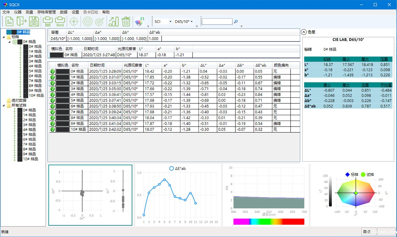 TS7020分光色差仪搭配的SQCX品质管理软件,适用于各个行业的品质监控和颜色数据管理。将用户的颜色管理数据化,比较颜色差别,生成测试报告,提供多种色空间测量数据,定制化客户的颜色管理工作。