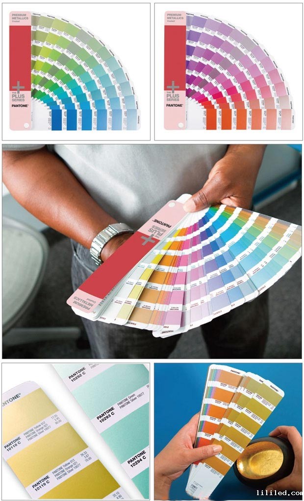 全新的Plus系列金属色— 光面铜版纸[Plus SERIES PREMIUM METALLICS]包含300种光彩夺目的金属色,以满足人气急速攀升的特效油墨需求。Plus系列金属色更闪亮耀眼,可轻松涂层而丝毫无损光泽度。其印后寿命更长,无需担心脱色或产生斑点。扇形指南按色谱顺序排列,使得色彩选择更加直观。提供油墨配方。包含设计软件。只提供光面铜版纸。