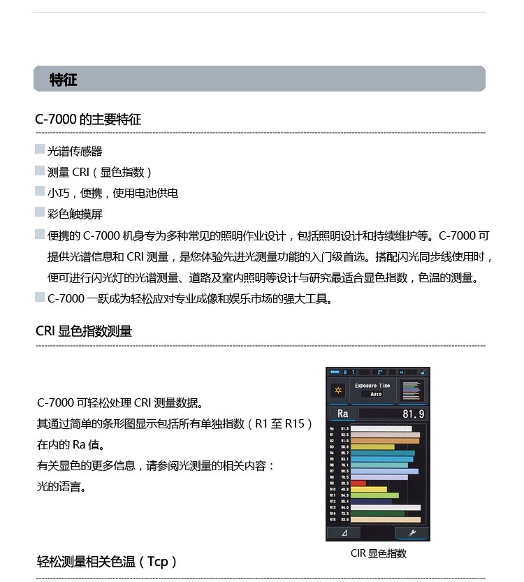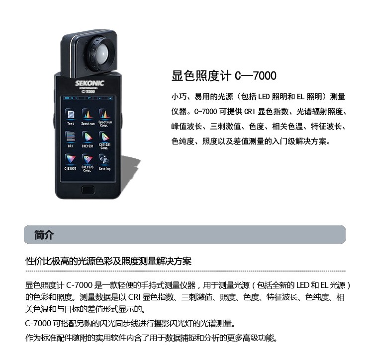 显色照度计 C-7000小巧、易用的光源(包括LED照明和EL照明)测量仪器。