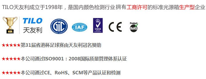 ●灯箱内提供D65光源,另配置A灯和TL84两种光源作为备用光源。